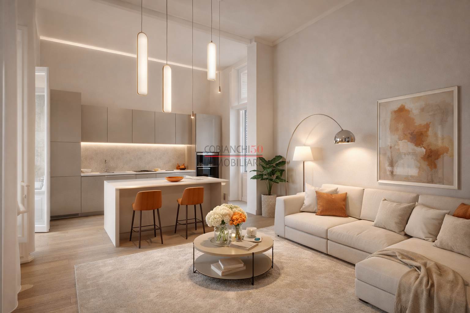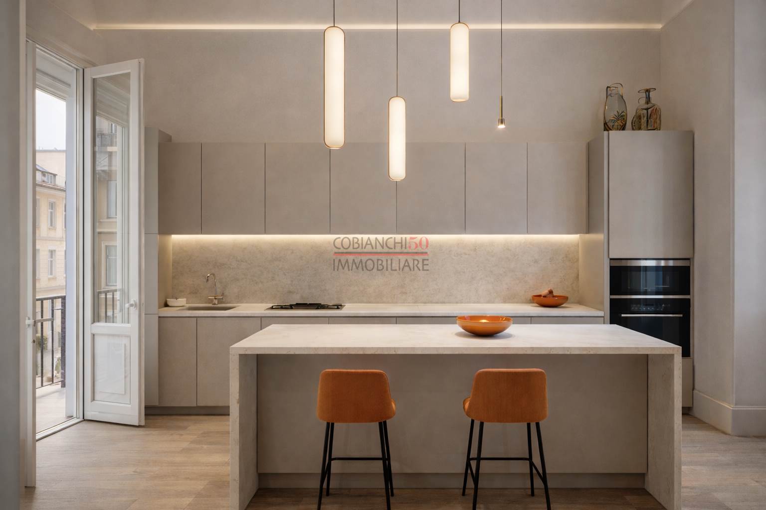 cucina soggiorno con balcone