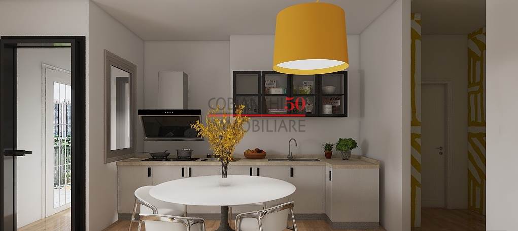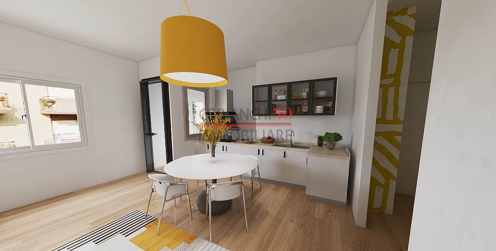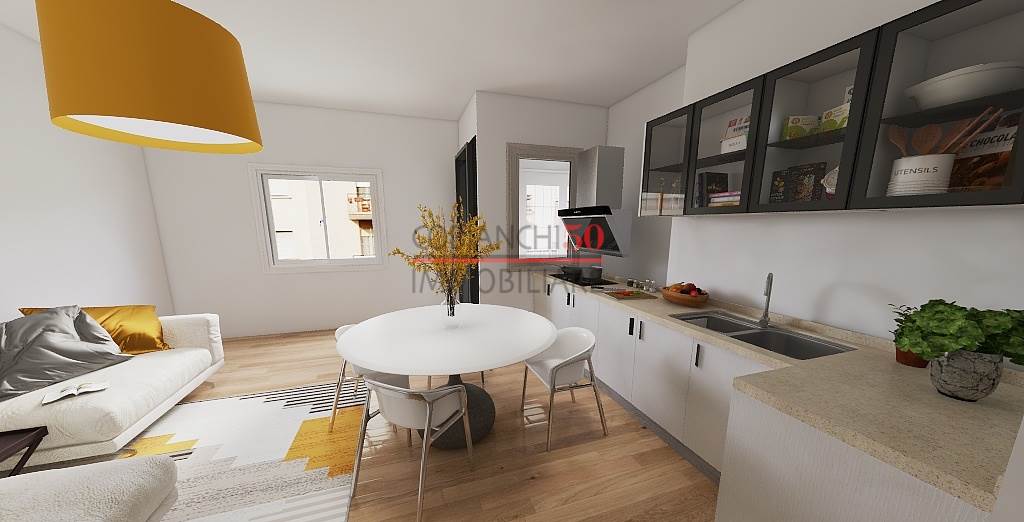 L'appartamento si apre su un comodo ingresso che conduce alla zona giorno, dove troviamo il soggirono, un angolo cottura funzionale e una luminosa veranda con accesso al balcone.