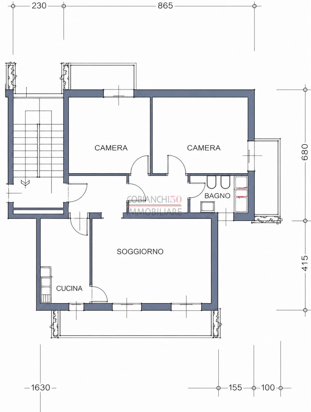 L'immobile si presta per essere trasformato in un comodo quadrilocale sfruttando la doppia finestra del soggiorno, inoltre, cosa non da sottovalutare, è un termoautonomo.